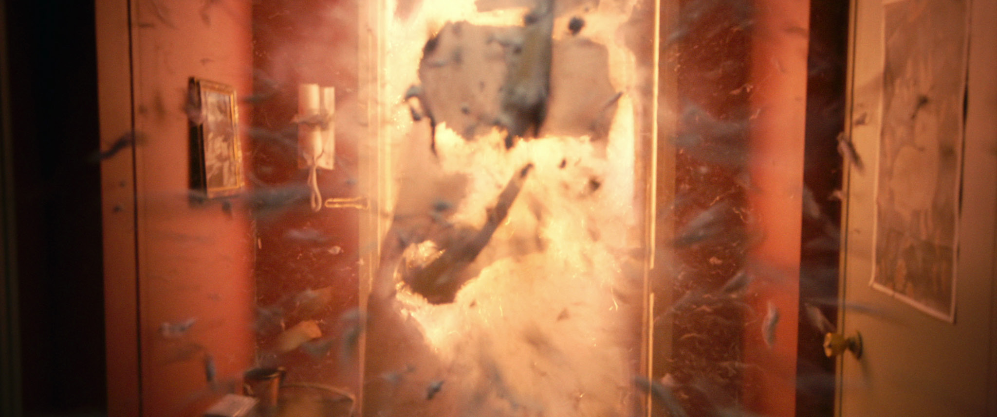 Et soudain, la porte explose en morceaux et laisse passer un homme, arme à la main. Mise en lien avec le petit jeu installé par le réalisateur autour du vrai-faux départ du film, l’arrivée du personnage ne correspond pas seulement à l’entrée d’un policier dans un laboratoire de drogue clandestin. C’est aussi un héros qui traverse l’écran et s’avance vers les spectateurs.