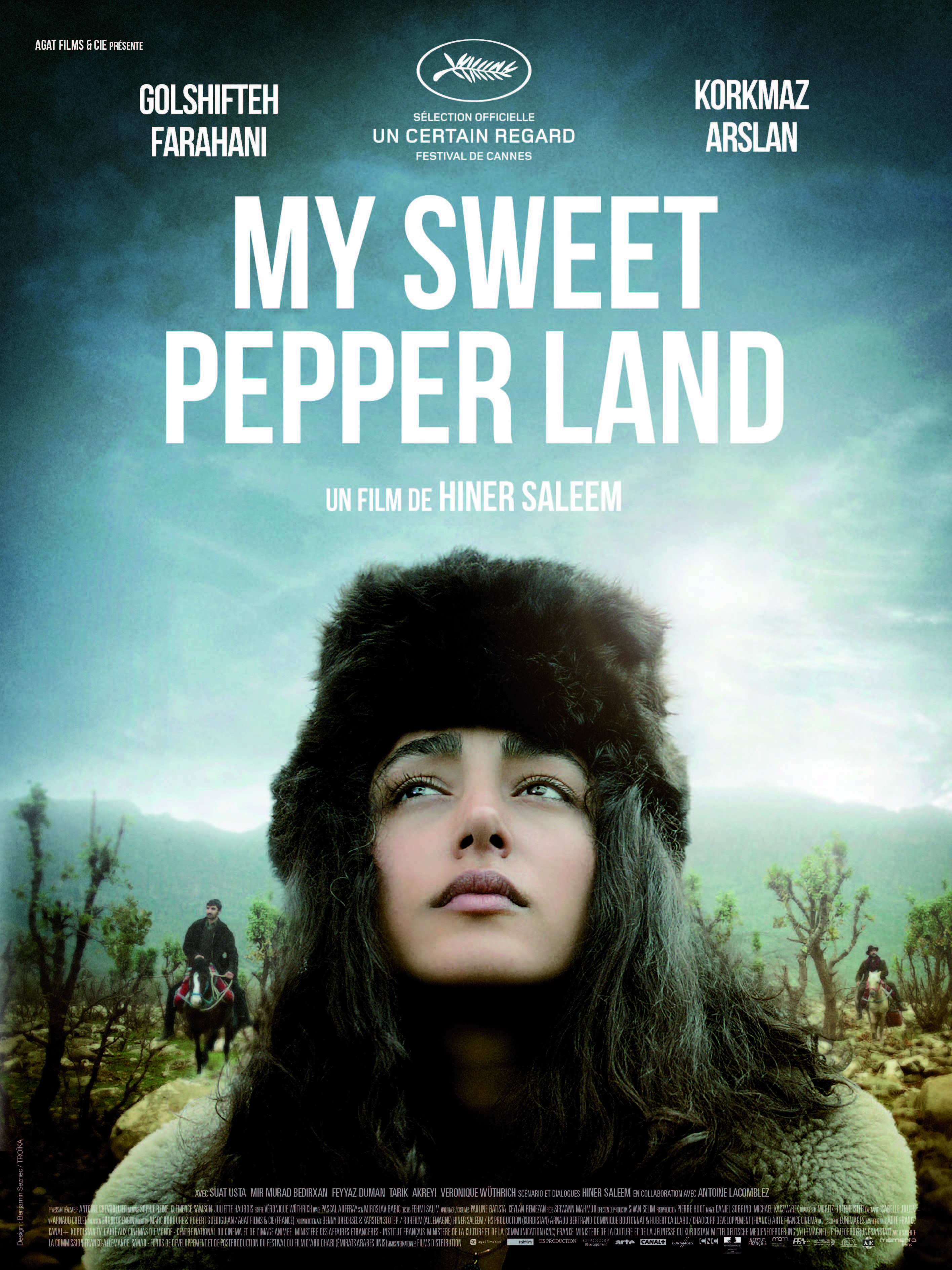 L'affiche de My Sweet Pepper Land met en avant le visage de l'actrice Golshifteh Farahani sur un fond